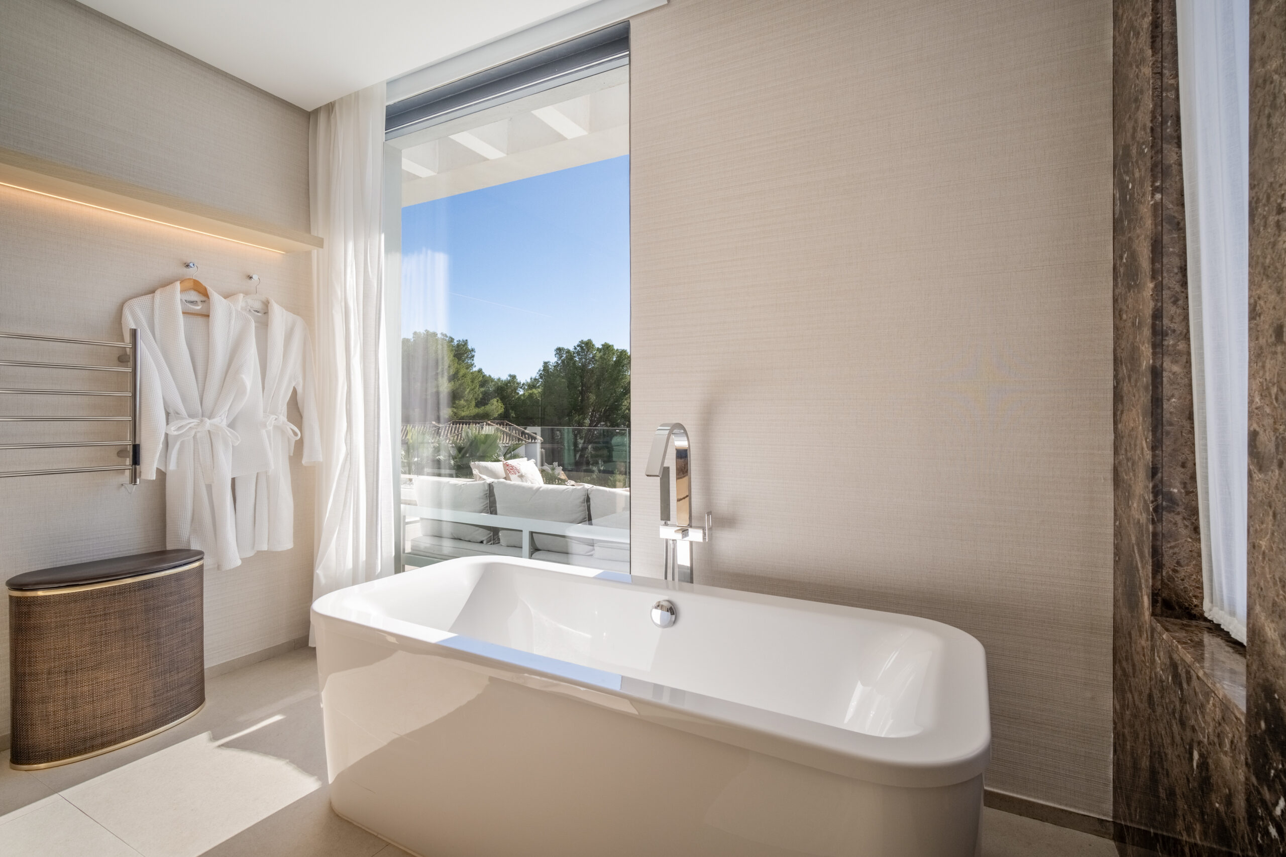 Découvrez l’élégance contemporaine de la Villa Mirage. Préparez-vous à être hypnotisé par les merveilleuses vues panoramiques des montagnes de La Concha et de la mer, qui s’étendent jusqu’en Afrique et Gibraltar lorsque le ciel est dégagé. Cette remarquable villa offre confort absolu, sophistication moderne, et une ambiance tranquille, servant d’endroit idyllique pour votre séjour à Marbella.
