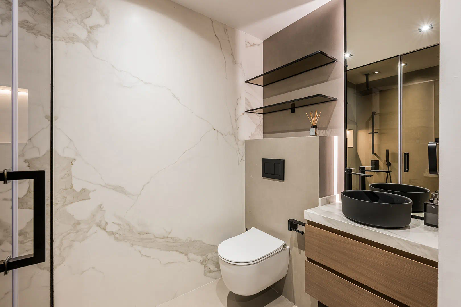 Step outside and you’ll discover your own private sanctuary. The landscaped garden features a sparkling swimming pool surrounded by tranquil seating areas and sunny terraces; the perfect place to unwind, entertain, or simply enjoy Marbella’s year-round sunshine. Every inch of this property has been designed to provide a seamless connection between indoor and outdoor living, capturing the essence of Mediterranean luxury. Meanwhile, downstairs, the basement’s wellness facilities include a private gym and salon area equipped for blow dry’s, manicures and pedicures, offer a haven for fitness enthusiasts and those craving a little pampering.