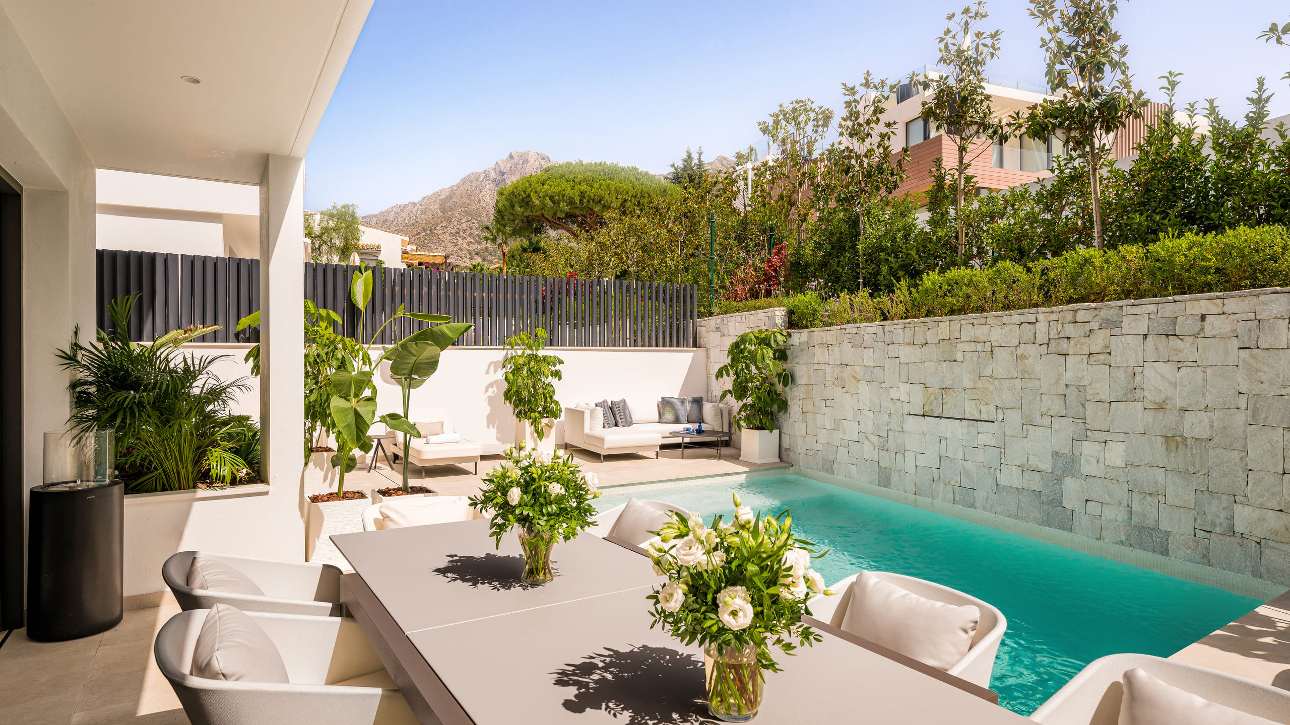 Step outside and you’ll discover your own private sanctuary. The landscaped garden features a sparkling swimming pool surrounded by tranquil seating areas and sunny terraces – the perfect place to unwind, entertain, or simply enjoy Marbella’s year-round sunshine. Every inch of this property has been designed to provide a seamless connection between indoor and outdoor living, capturing the essence of Mediterranean luxury. Meanwhile, downstairs, the basement’s wellness facilities — including the private gym and salon area — offer a haven for fitness enthusiasts and those craving a little pampering.